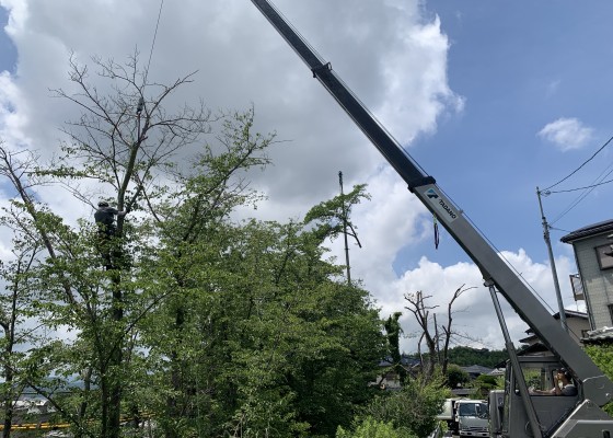 兵庫県宝塚市でラフタークレーン伐採工事を行いました。ツリークライミングによる特殊伐採だと時間がかかるような現場でもラフタークレーンを使えば安全かつ迅速に工事を終…続きはこちら